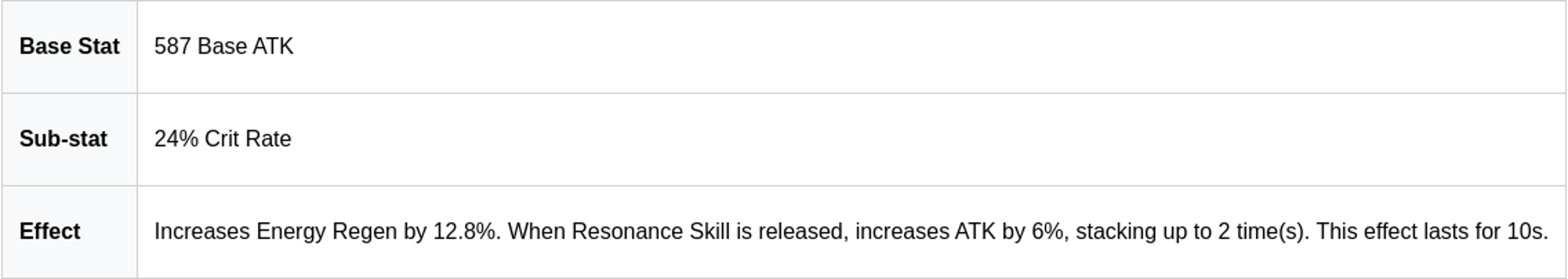 The Emerald of Genesis stands out as a premier 5-star weapon that perfectly complements Aero Rover's needs, especially for free-to-play players. It provides a comprehensive boost, enhancing critical rate, energy regeneration, and attack percentage—all vital stats for maximizing Aero Rover's performance. Its high base attack also contributes significantly to increasing Aero Rover’s attack scaling, making it a versatile and valuable choice. Overall, the Emerald of Genesis is an excellent weapon option for Aero Rover in Wuthering Waves, delivering balanced enhancements across key attributes.