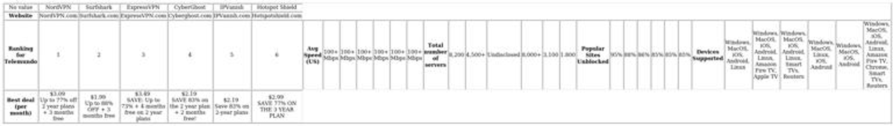 While this overview highlights key features, our detailed testing and ranking methodology, outlined below, provides more insight into our selection process. For now, let’s explore the VPNs that have earned our top recommendations for watching Telemundo Deportes. Nov 2025 Unblocks Telemundo Deportes Tested Nov 2025Unlock Telemundo Deportes Anywhere with NordVPN